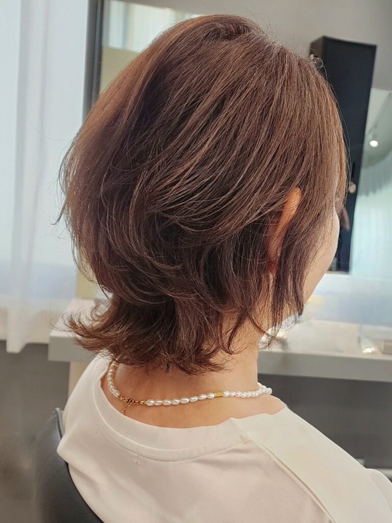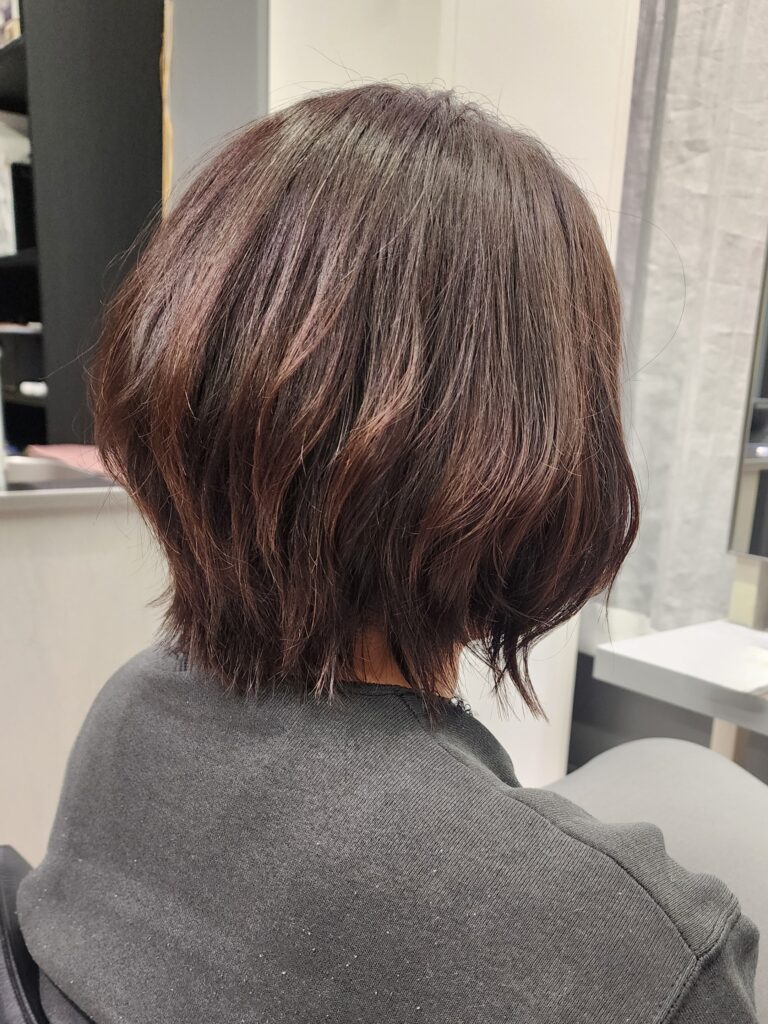 今回ご紹介するヘアスタイルは40代から50代の白髪のある世代のお客様で、悩みをカバーしながらの外ハネボブスタイルがポイント!